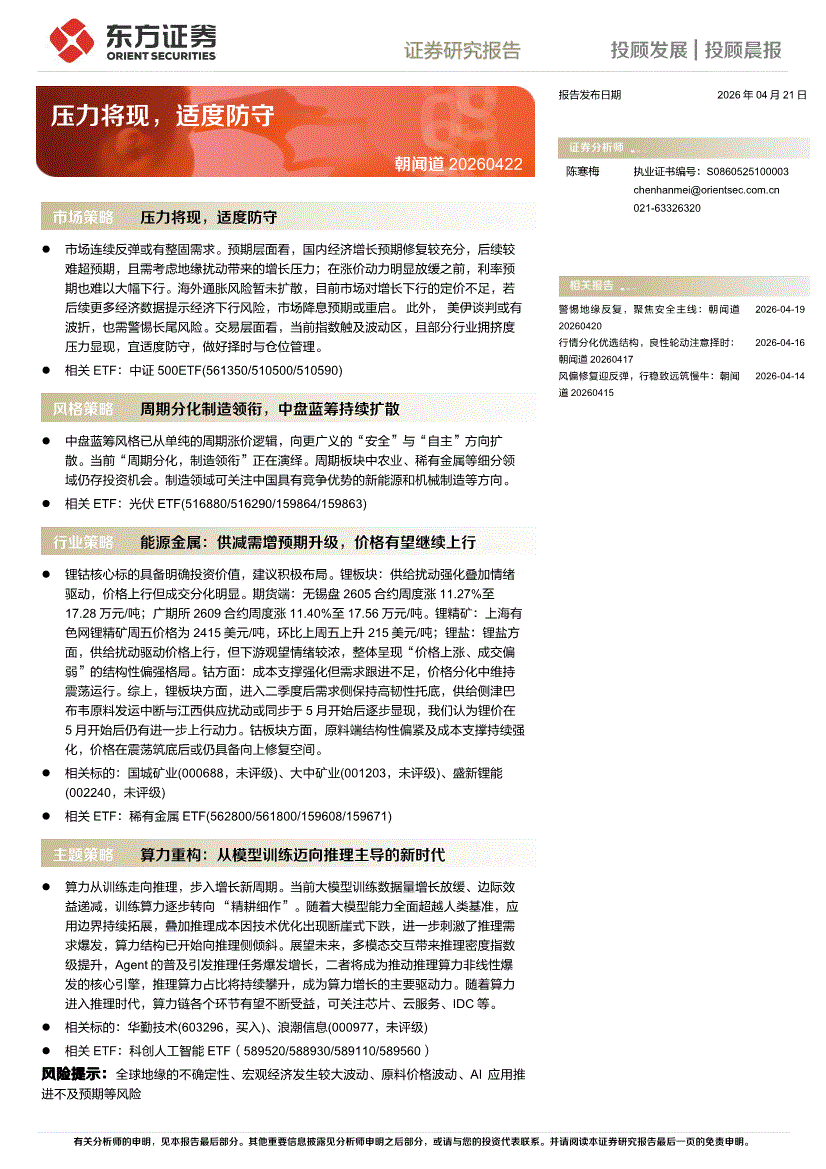 东方证券-朝闻道:行情分化优选结构,良性轮动注意择时-260416