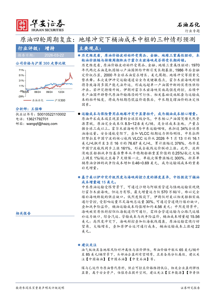 石油石化行业:华安证券-石油石化行业原油四轮周期复盘:地缘冲突下桶油成本中枢的三种情形预测-260322