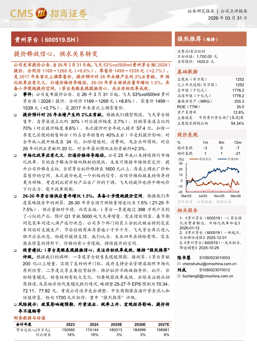 贵州茅台:招商证券-贵州茅台-600519-提价释放信心,供求关系转变-260331