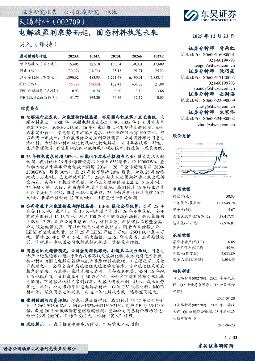 天赐材料:东吴证券-天赐材料-002709-电解液盈利乘势而起,固态材料执笔未来-251223