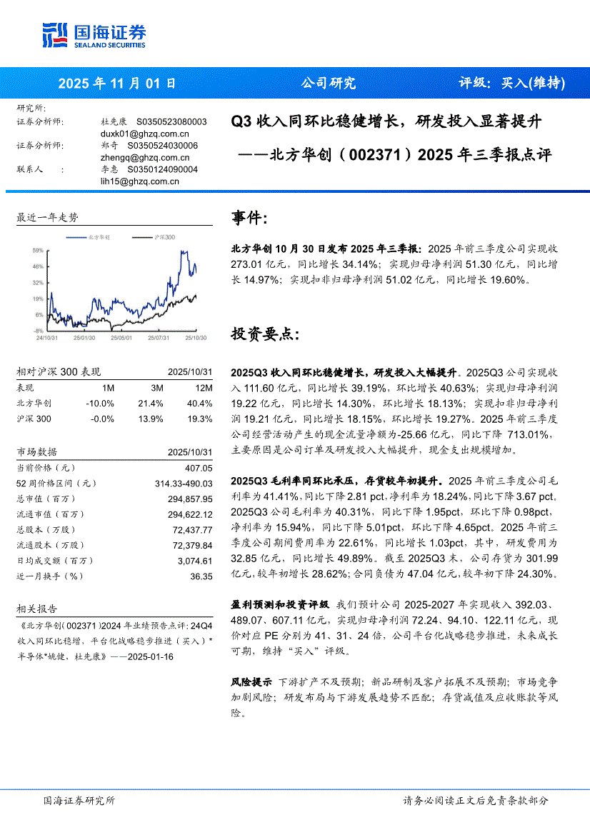 北方华创:国海证券-北方华创-002371-2025年三季报点评:Q3收入同环比稳健增长,研发投入显著提升-251101