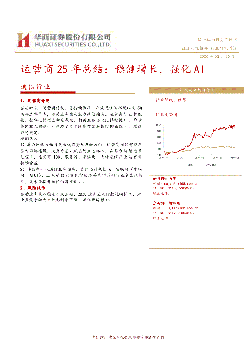 通信行业:华西证券-通信行业研究周报:运营商25年总结,稳健增长,强化AI-260330