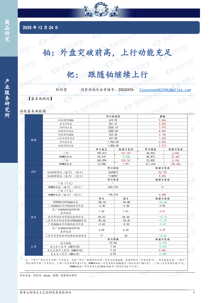 国泰君安期货-铂:外盘突破前高,上行动能充足,钯,跟随铂继续上行-251224