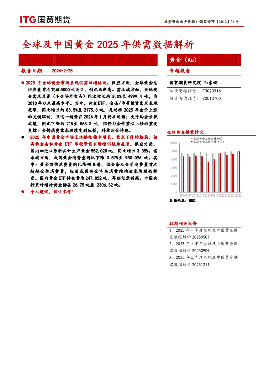 国贸期货-黄金(Au)专题报告:全球及中国黄金2025年供需数据解析-260225