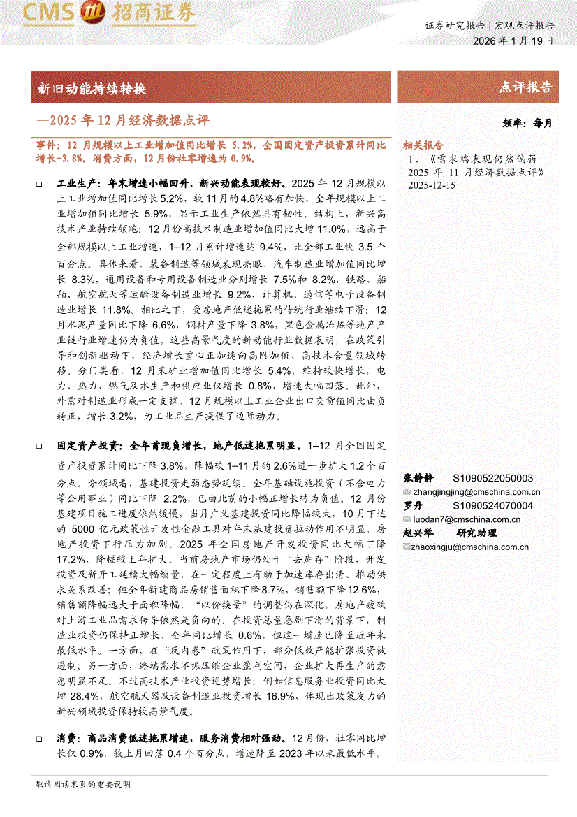 招商证券-2025年12月经济数据点评:新旧动能持续转换-260119