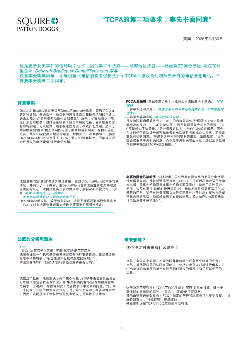 翰宇国际律师事务所-TCPA事先明确书面同意要求的“第二次打击”(英译中)-260330