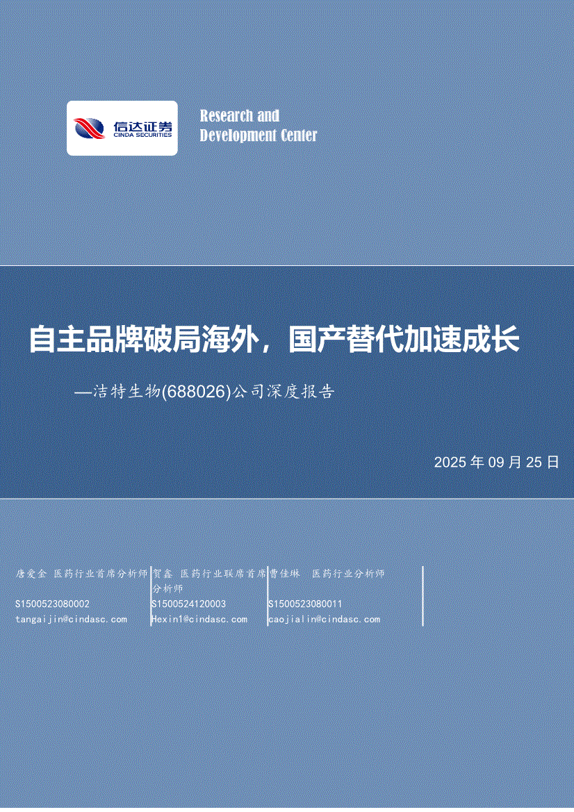 洁特生物:信达证券-洁特生物-688026-公司深度报告:自主品牌破局海外,国产替代加速成长-250925
