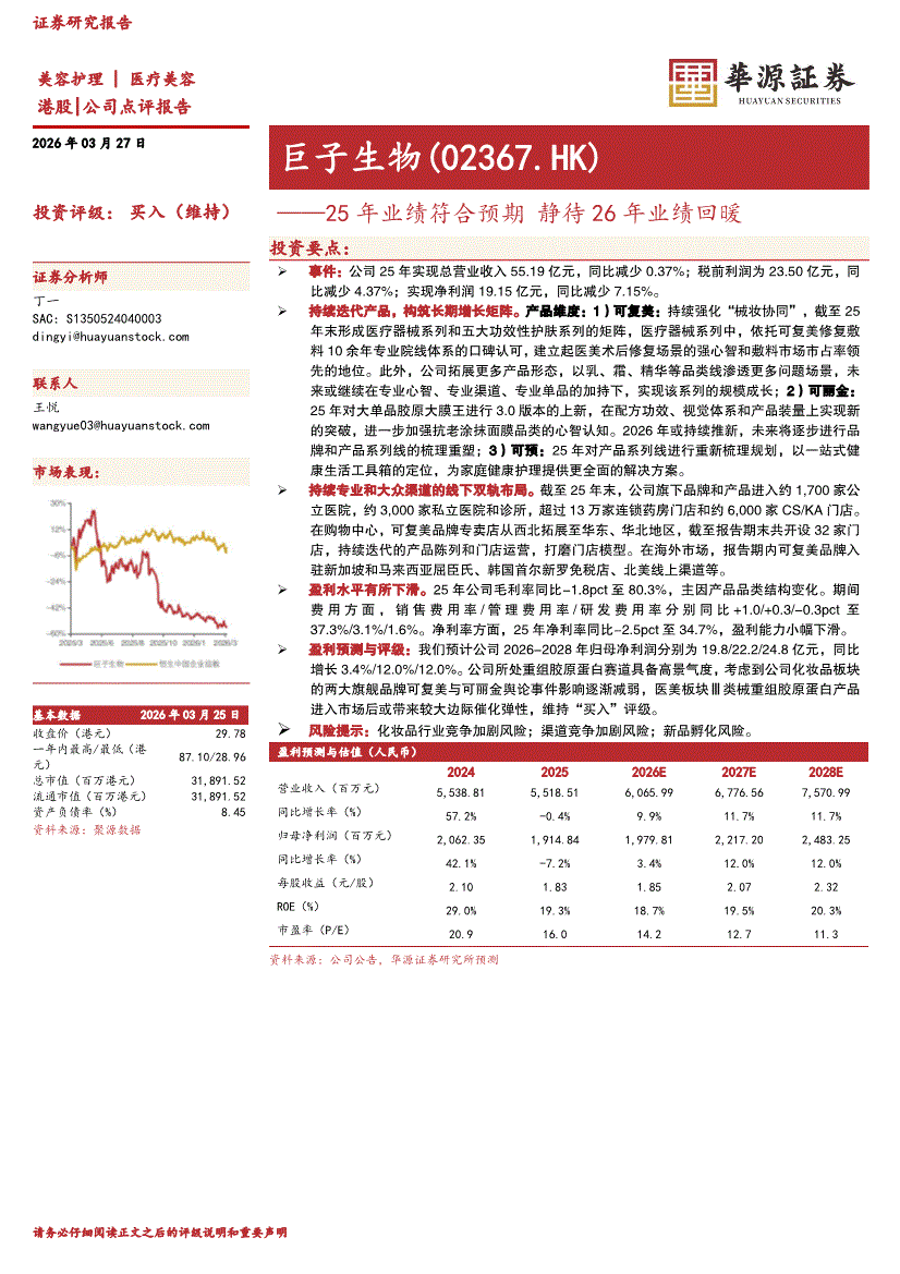 巨子生物:华源证券-巨子生物-2367.HK-25年业绩符合预期,静待26年业绩回暖-260327