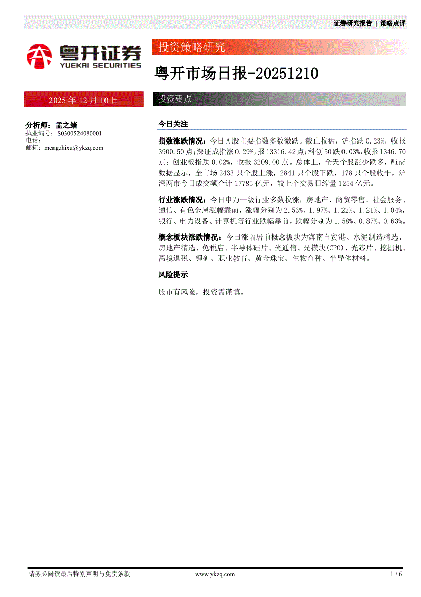 粤开证券-粤开市场日报-251210