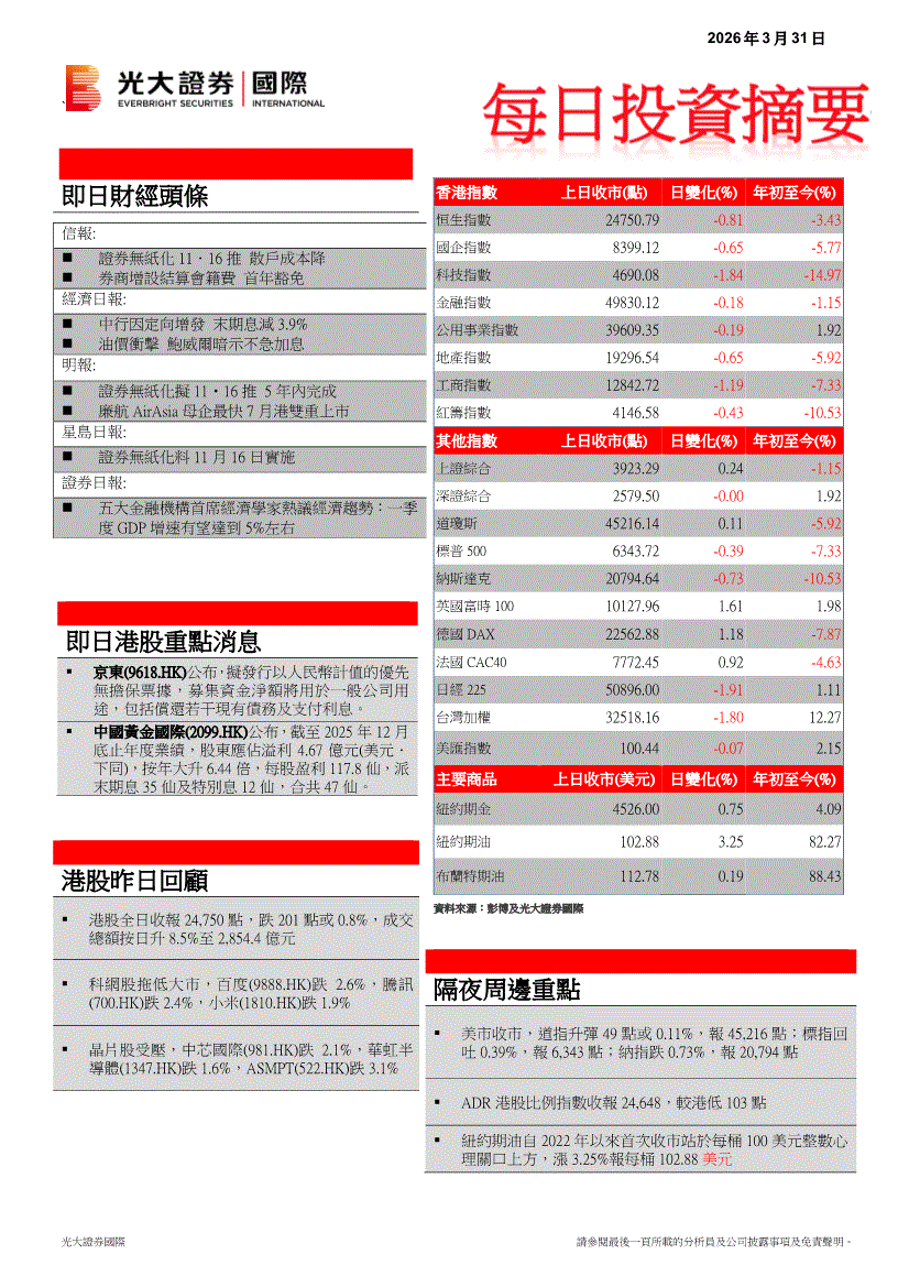 光大证券(国际)-每日投资摘要-260331