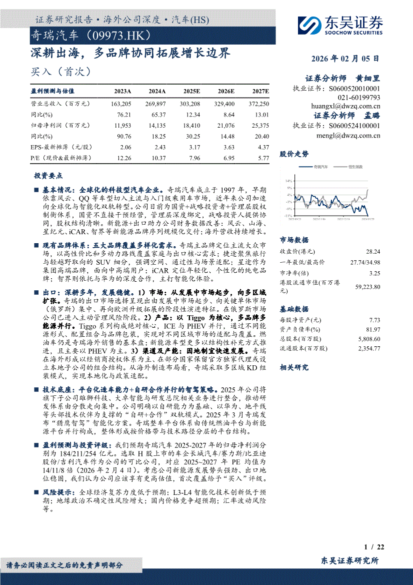 奇瑞汽车:东吴证券-奇瑞汽车-9973.HK-深耕出海,多品牌协同拓展增长边界-260205