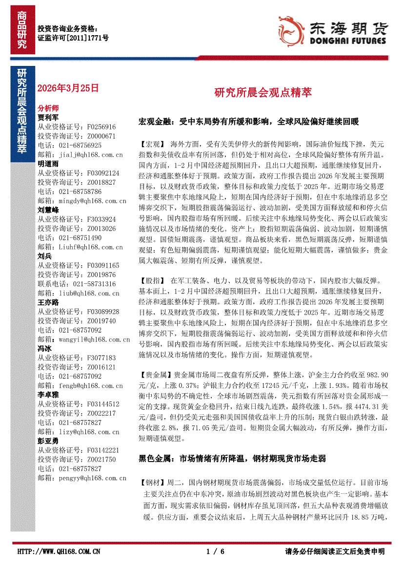 东海期货-研究所晨会观点精萃-260325