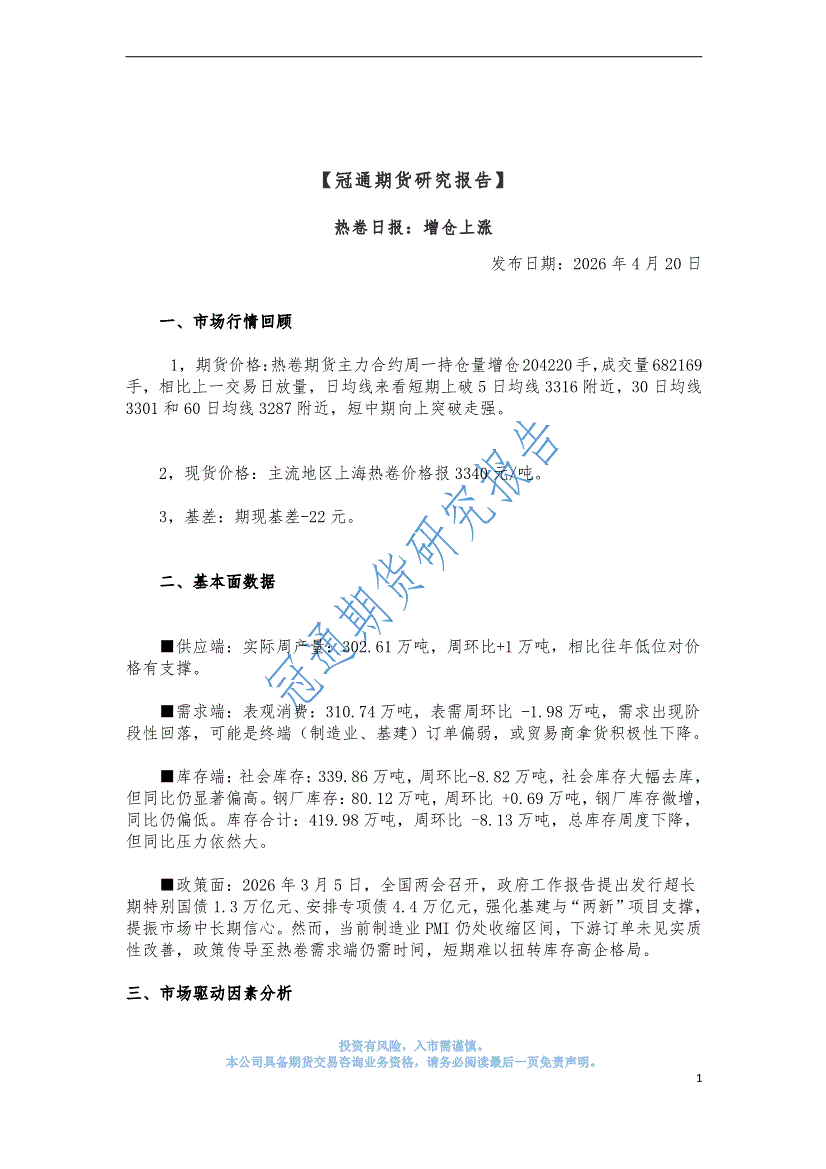 冠通期货-热卷日报:增仓上涨-260420