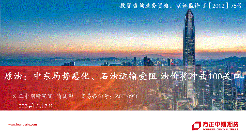 方正中期期货-原油:中东局势恶化、石油运输受阻,油价将冲去100关口-260307