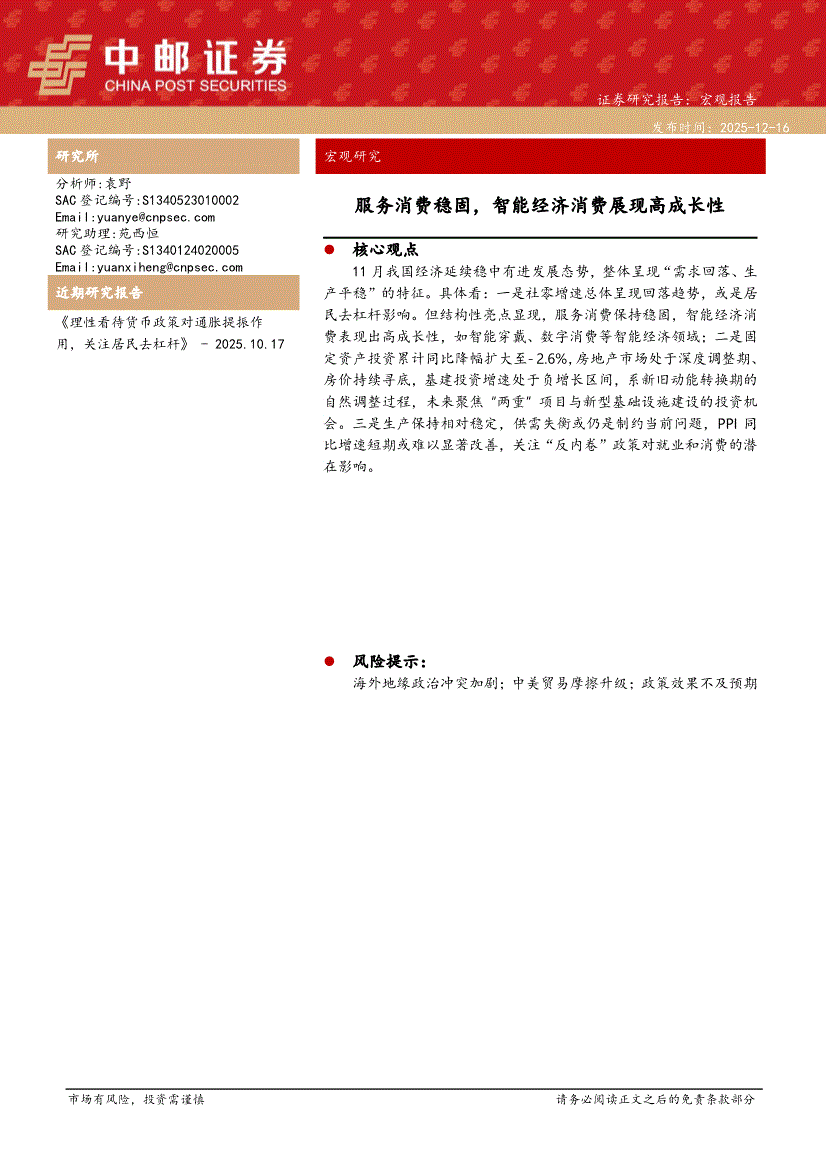 中邮证券-宏观报告:服务消费稳固,智能经济消费展现高成长性-251216