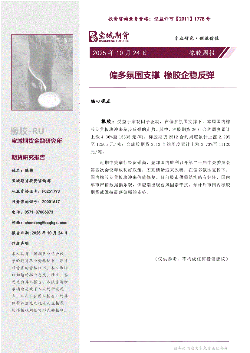 宝城期货-橡胶周报:偏多氛围支撑,橡胶企稳反弹-251024