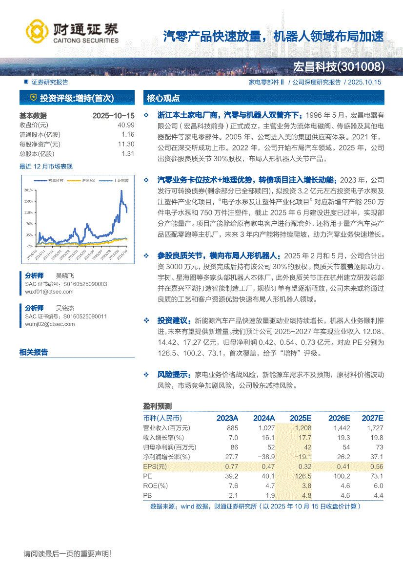 宏昌科技:财通证券-宏昌科技-301008-汽零产品快速放量,机器人领域布局加速-251015