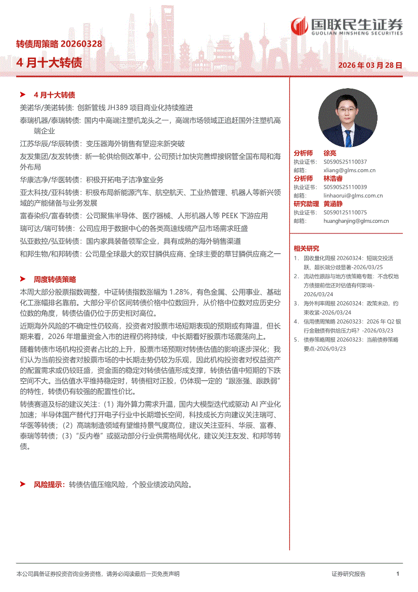 国联民生证券-转债周策略:4月十大转债-260328