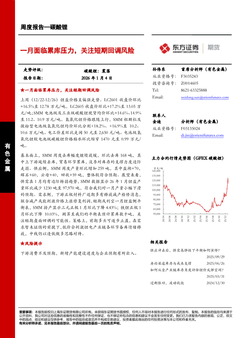 东证期货-碳酸锂周度报告:一月面临累库压力,关注短期回调风险-260104