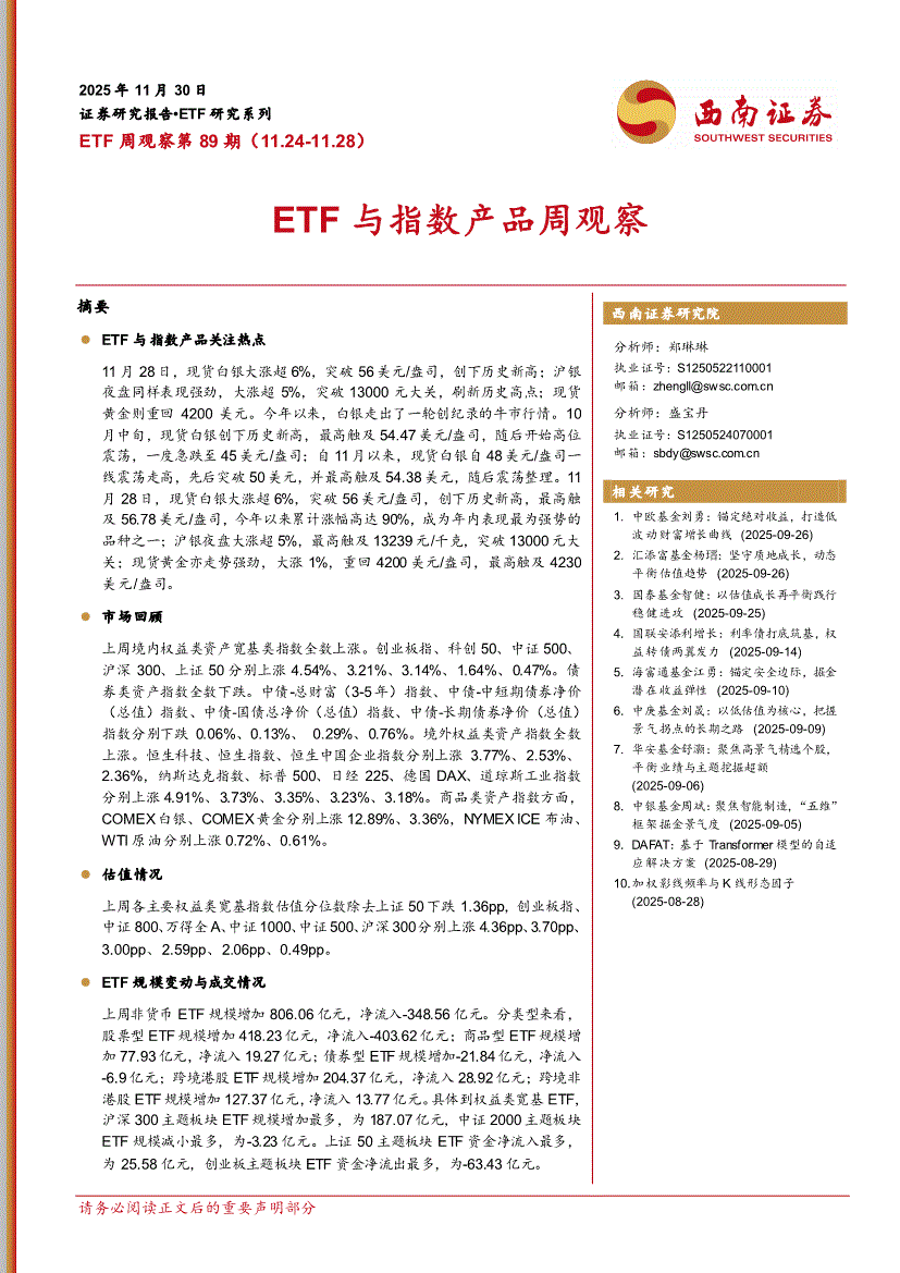 西南证券-ETF周观察第89期:ETF与指数产品周观察-251130