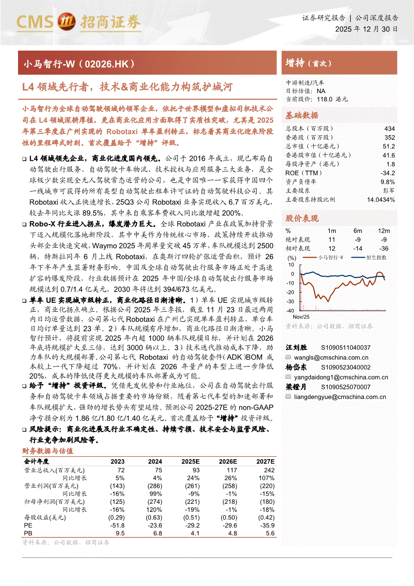 小马智行~W:招商证券-小马智行~W-2026.HK-L4领域先行者,技术&商业化能力构筑护城河-251230