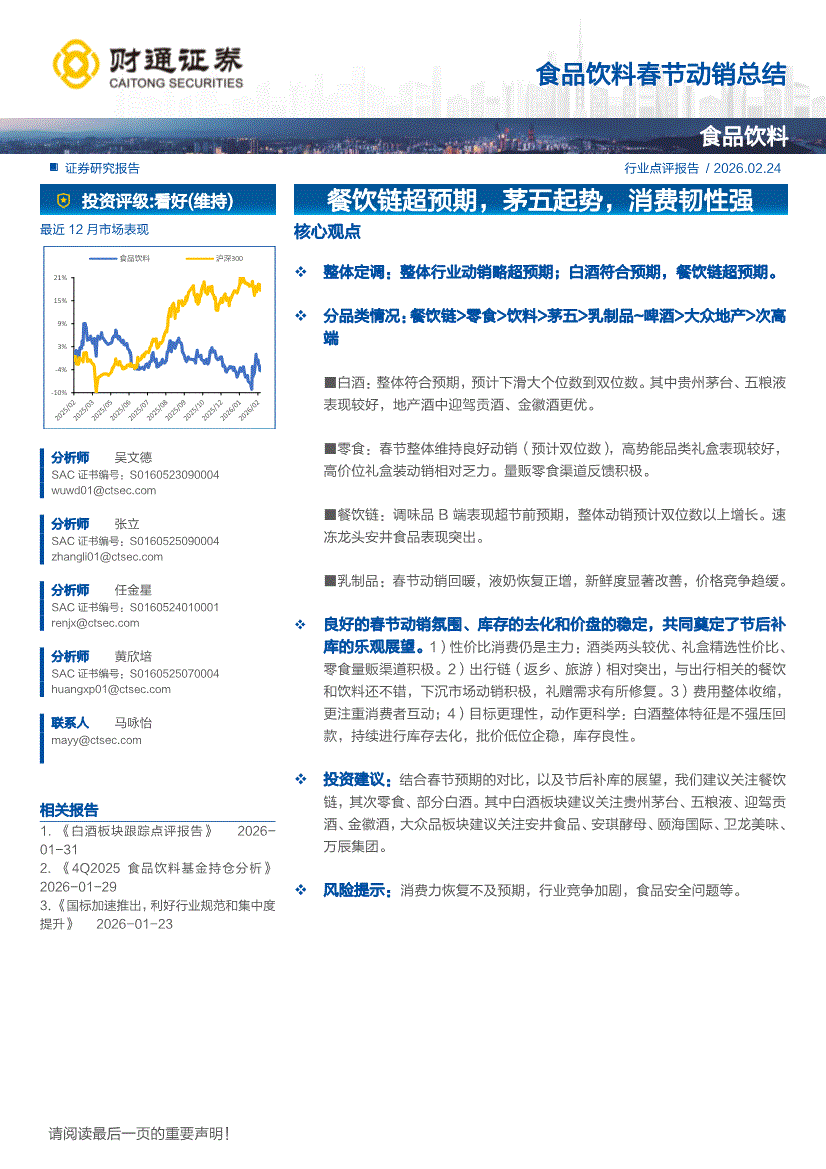 食品饮料行业:财通证券-食品饮料行业春节动销总结:餐饮链超预期,茅五起势,消费韧性强-260224
