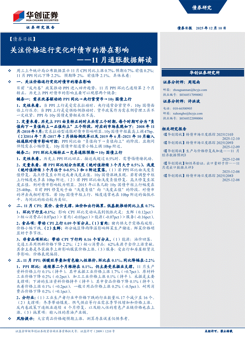 华创证券-11月通胀数据解读:关注价格运行变化对债市的潜在影响-251210