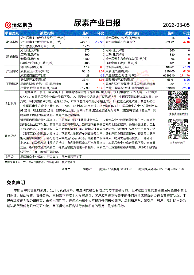 瑞达期货-尿素产业日报-260305