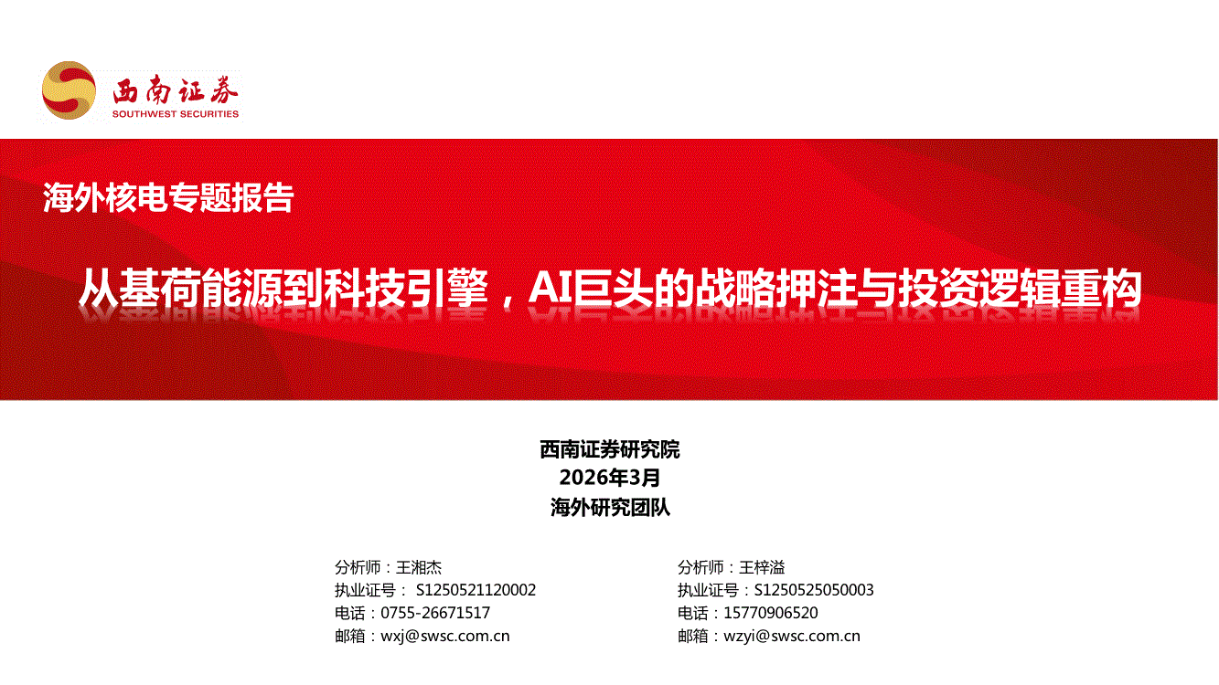 核电行业:西南证券-海外核电行业专题报告:从基荷能源到科技引擎,AI巨头的战略押注与投资逻辑重构-260305