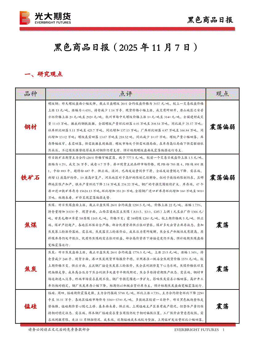 光大期货-光期黑色:铁矿石基差及价差监测日报-251029