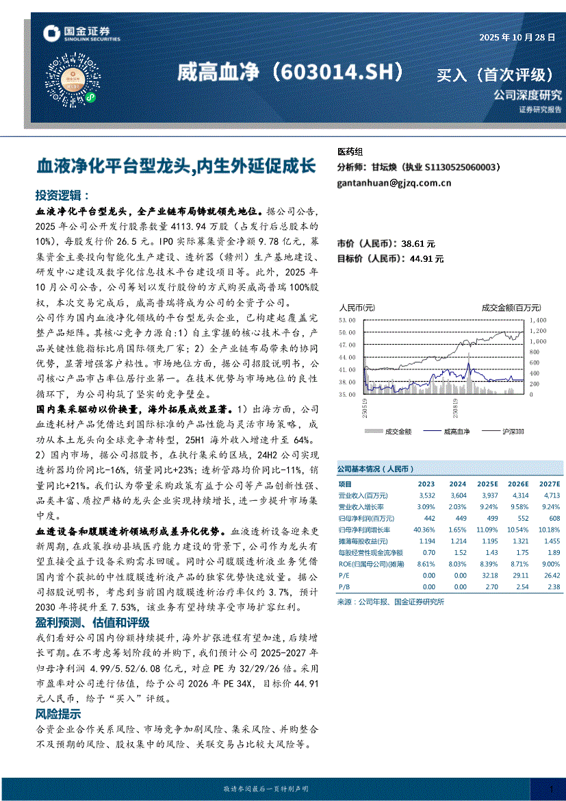 威高血净:国金证券-威高血净-603014-血液净化平台型龙头,内生外延促成长-251028