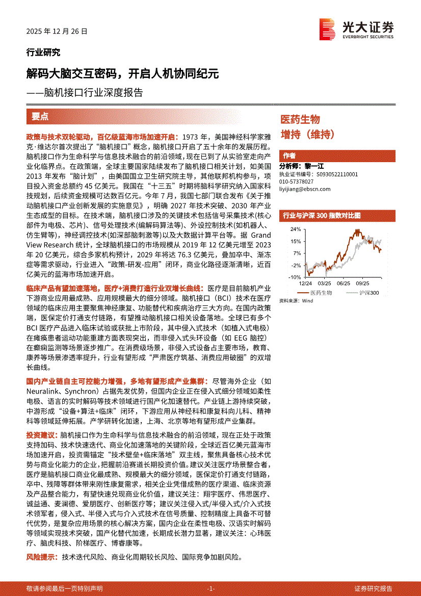 医药生物行业:光大证券-脑机接口行业深度报告:解码大脑交互密码,开启人机协同纪元-251226