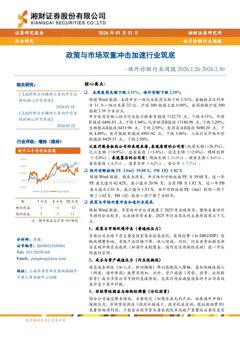 体外诊断行业:湘财证券-体外诊断行业周报:政策与市场双重冲击加速行业筑底-260131