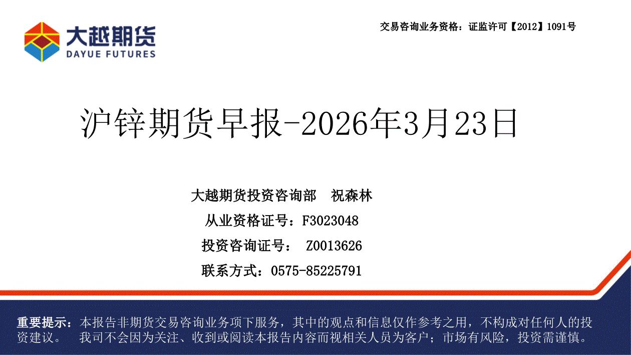 大越期货-沪锌期货早报-260323