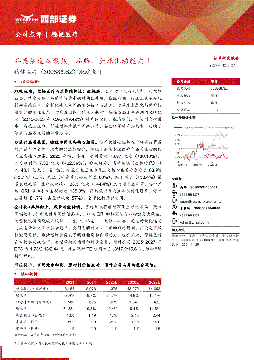 稳健医疗:西部证券-稳健医疗-300888-跟踪点评:品类渠道双聚焦,品牌、全球化动能向上-251227