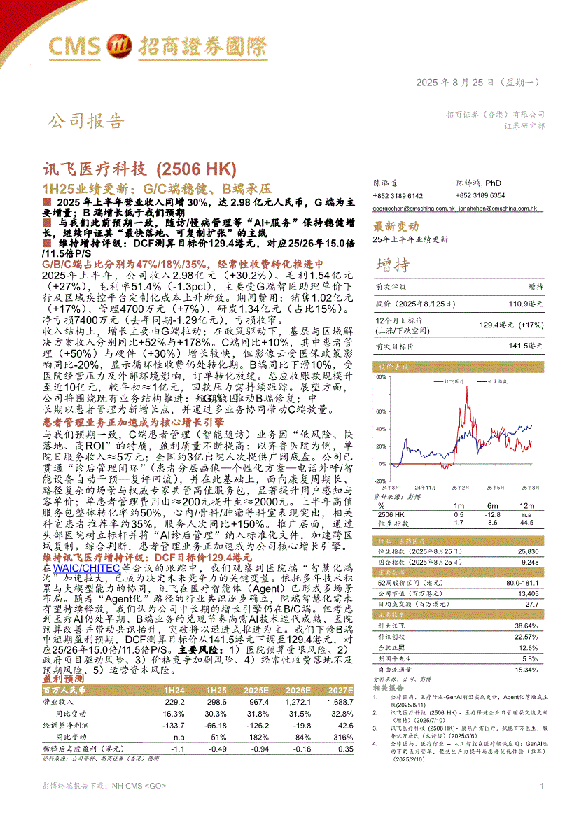 讯飞医疗科技:招商证券(香港)-讯飞医疗科技-2506.HK-1H25业绩更新:G/C端稳健、B端承压-250825