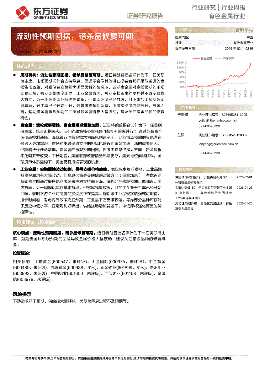 有色金属行业:东方证券-有色及贵金属行业周报:流动性预期回摆,错杀品修复可期-260202