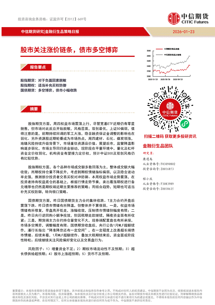中信期货-金融衍生品策略日报:股市关注涨价链条,债市多空博弈-260123
