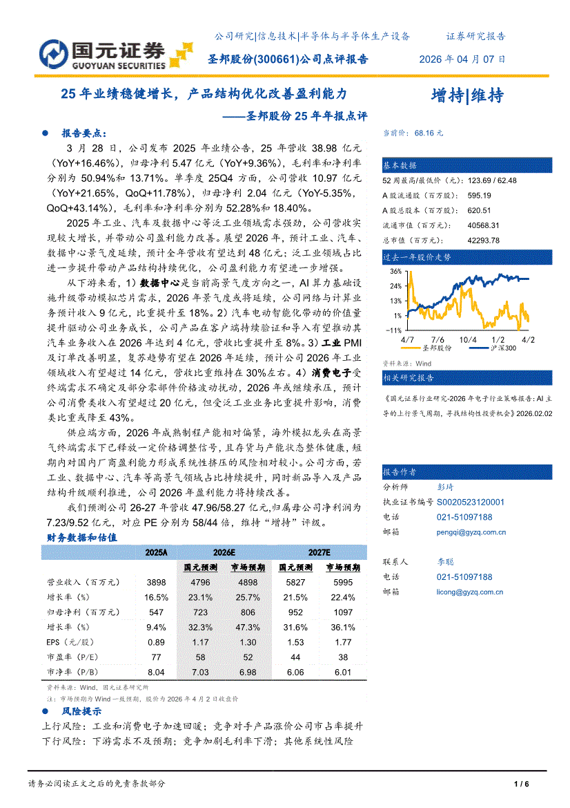 圣邦股份:国元证券-圣邦股份-300661-25年年报点评:25年业绩稳健增长,产品结构优化改善盈利能力-260407
