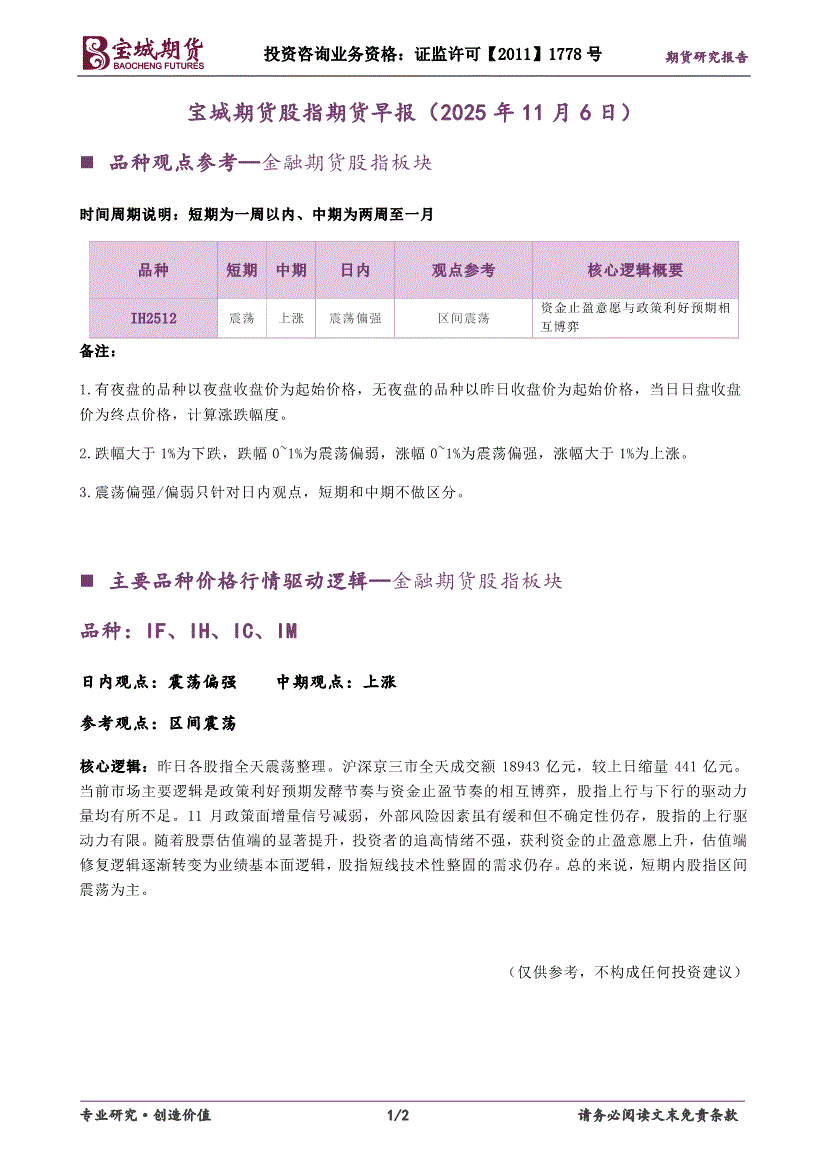 宝城期货-股指衍生品周报:短期内股指宽幅震荡为主-251103