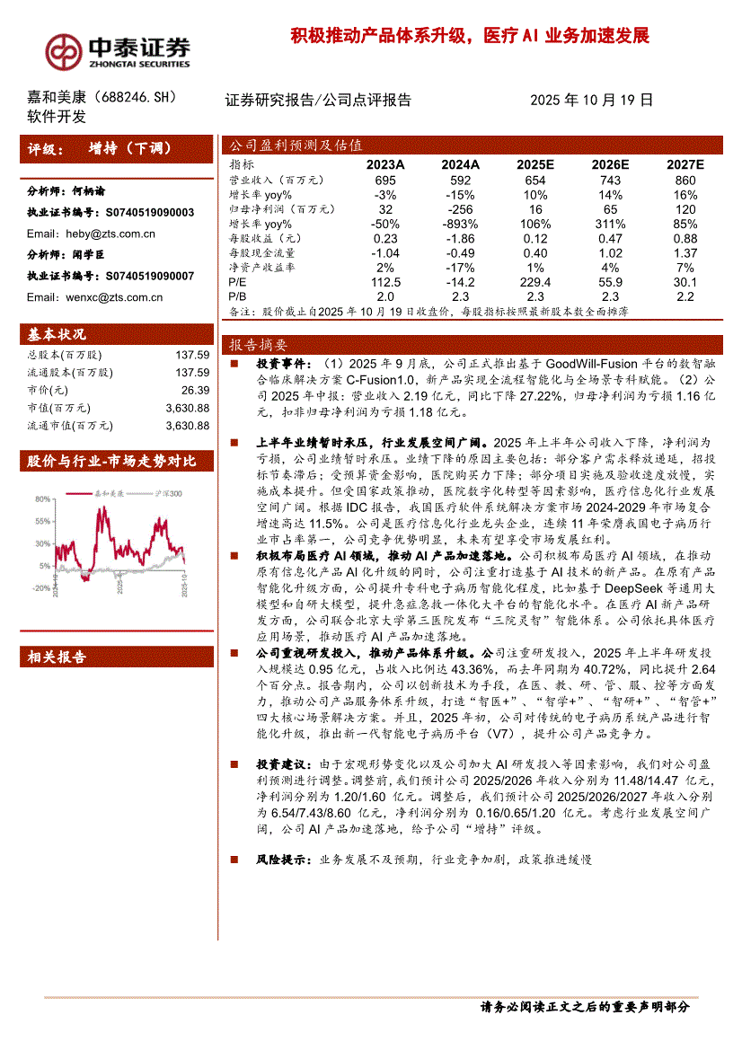 嘉和美康:中泰证券-嘉和美康-688246-积极推动产品体系升级,医疗AI业务加速发展-251019