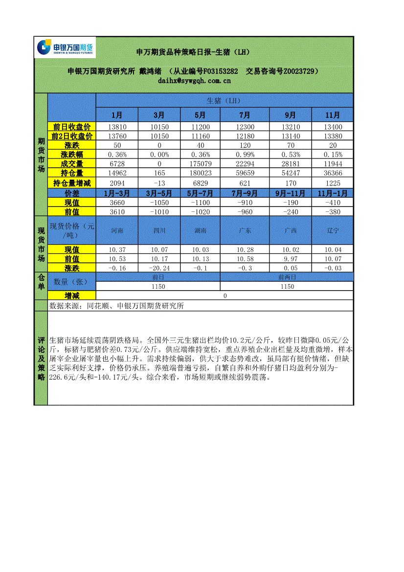 申银万国期货-品种策略日报:生猪(LH)-260211