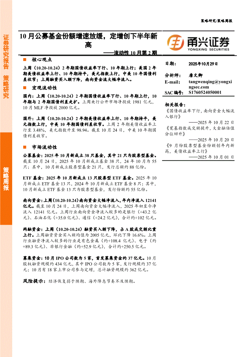 甬兴证券-流动性10月第2期:10月公募基金份额增速放缓,定增创下半年新高-251029