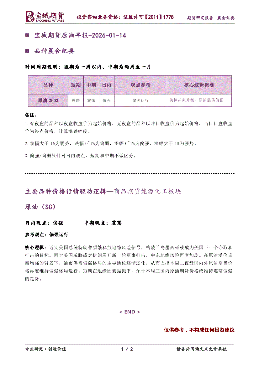 宝城期货-原油早报-260114