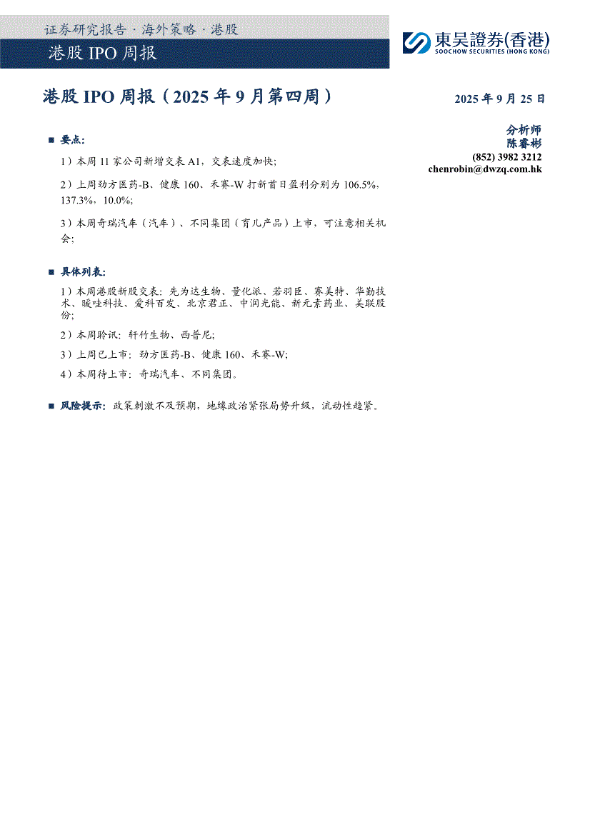 东吴证券(香港)-港股IPO周报(2025年9月第四周)-250925