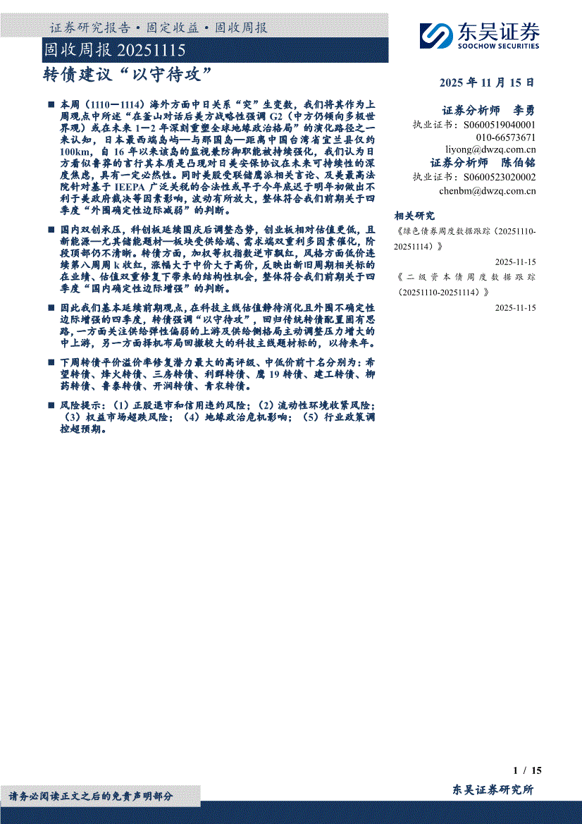 东吴证券-固收周报:转债建议“以守待攻”-251115