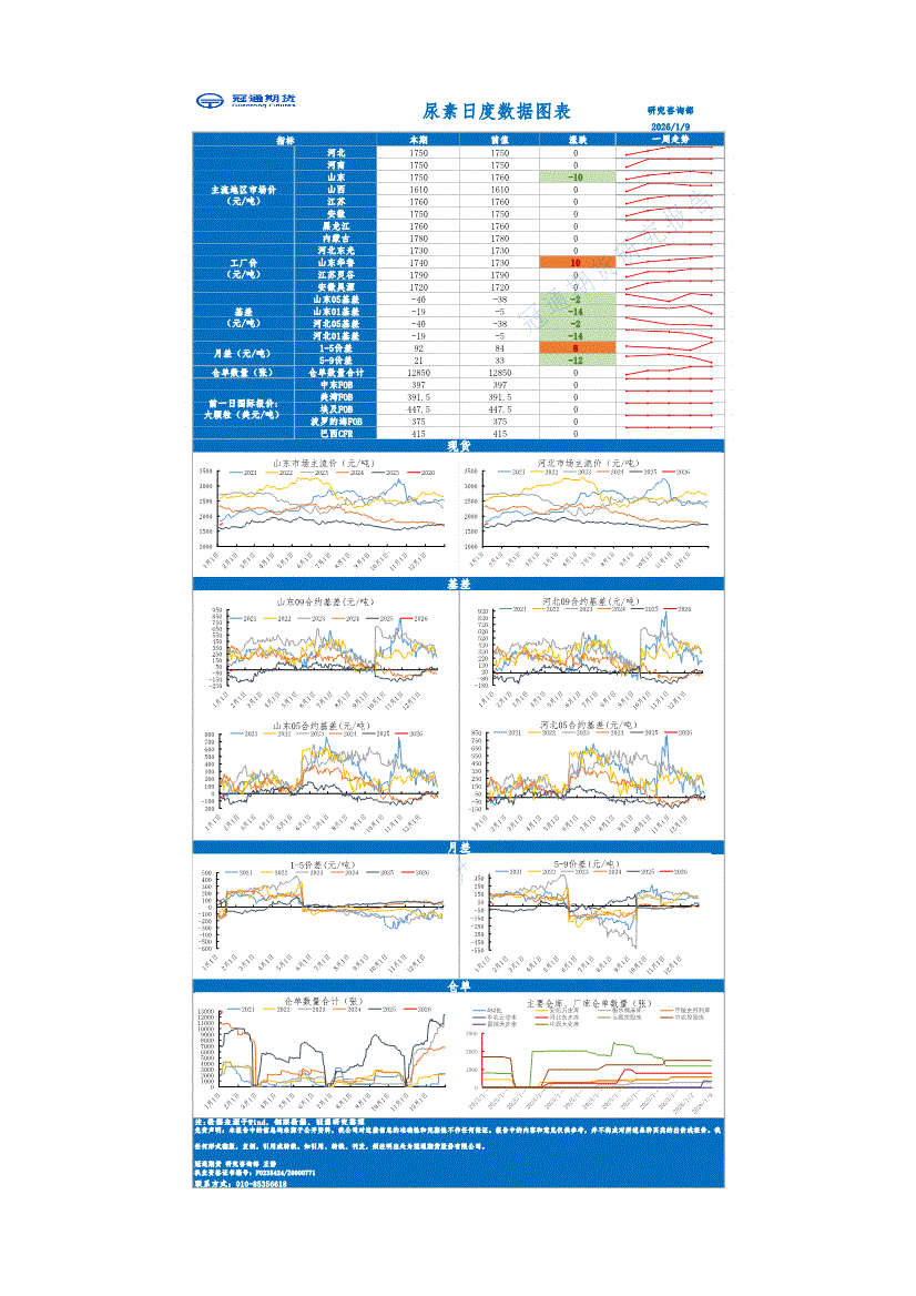 冠通期货-尿素日度数据图表-260109