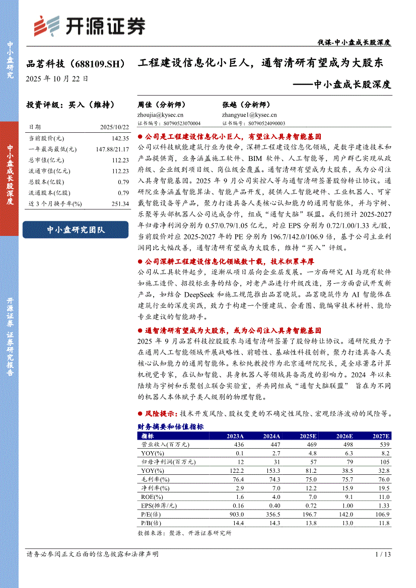 品茗科技:开源证券-品茗科技-688109-中小盘成长股深度:工程建设信息化小巨人,通智清研有望成为大股东-251022