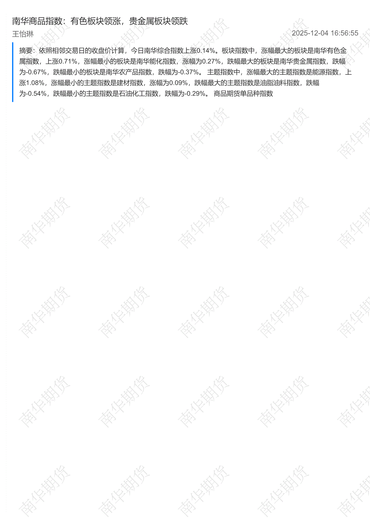 南华期货-商品指数:有色板块领涨,贵金属板块领跌-251204