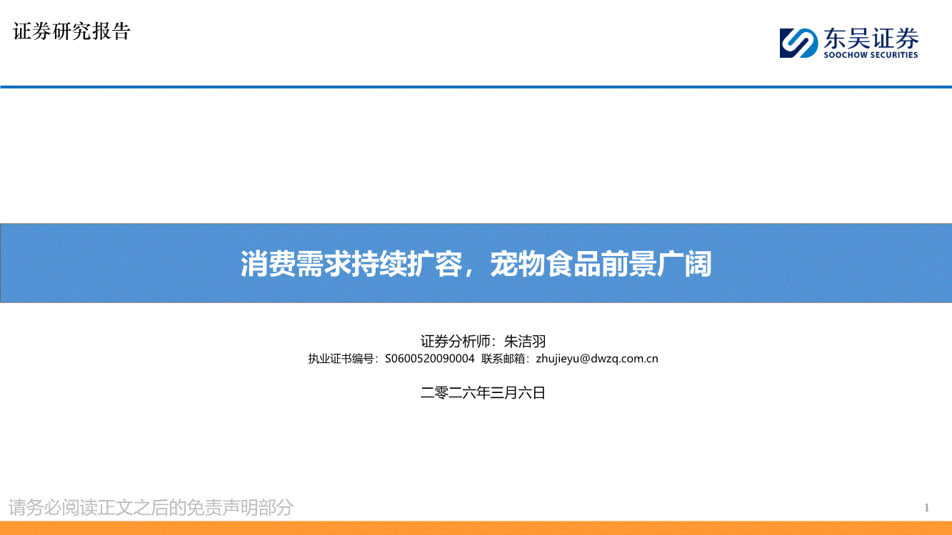 宠物行业:东吴证券-宠物行业:消费需求持续扩容,宠物食品前景广阔-260306